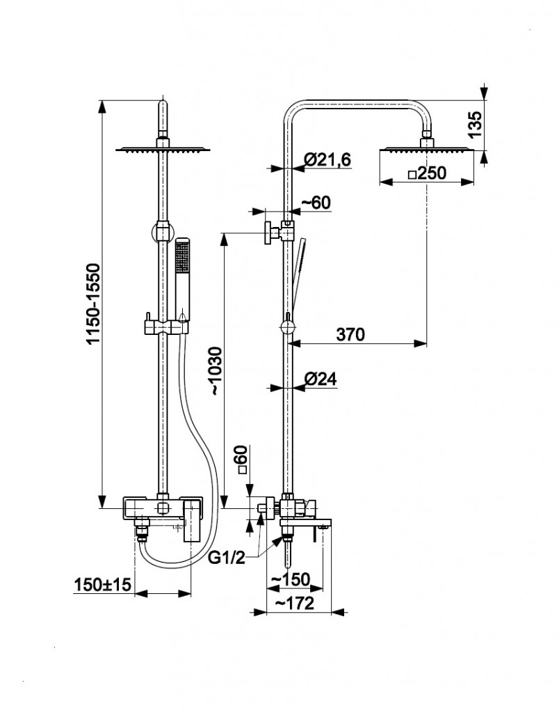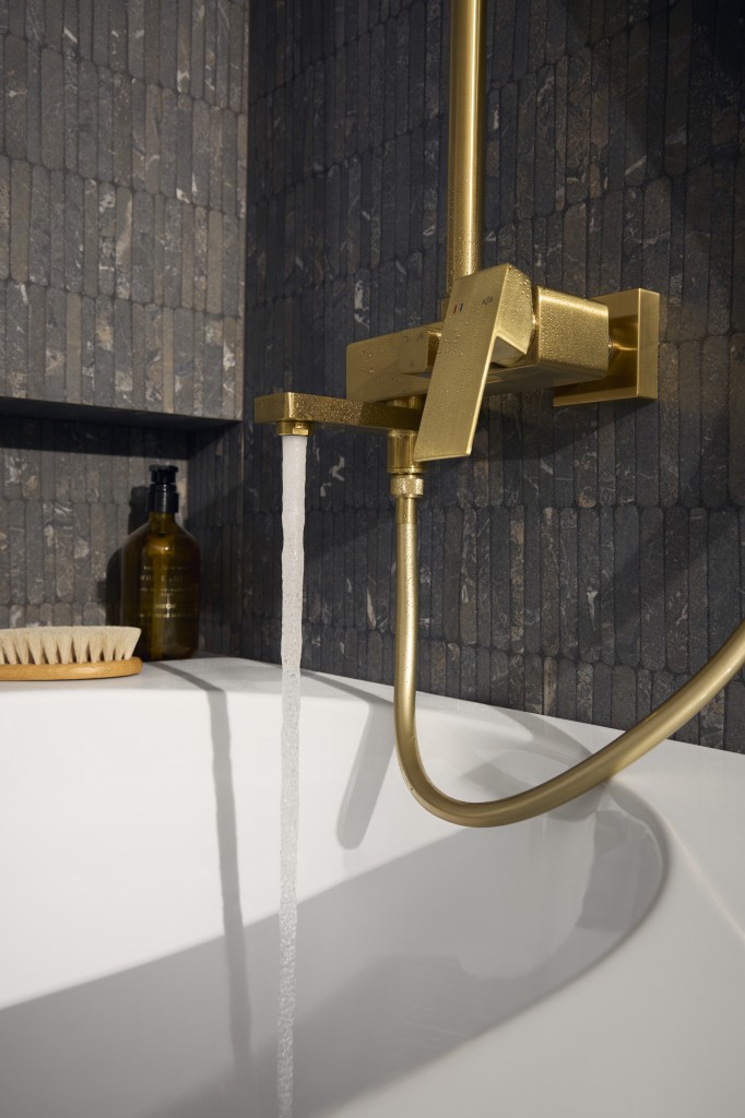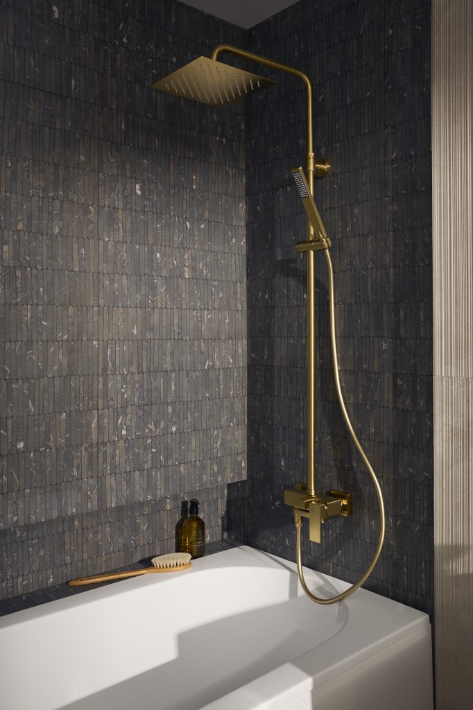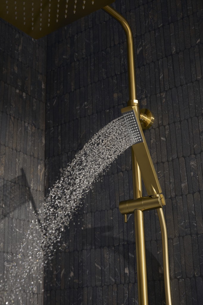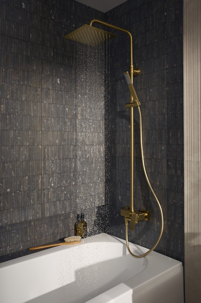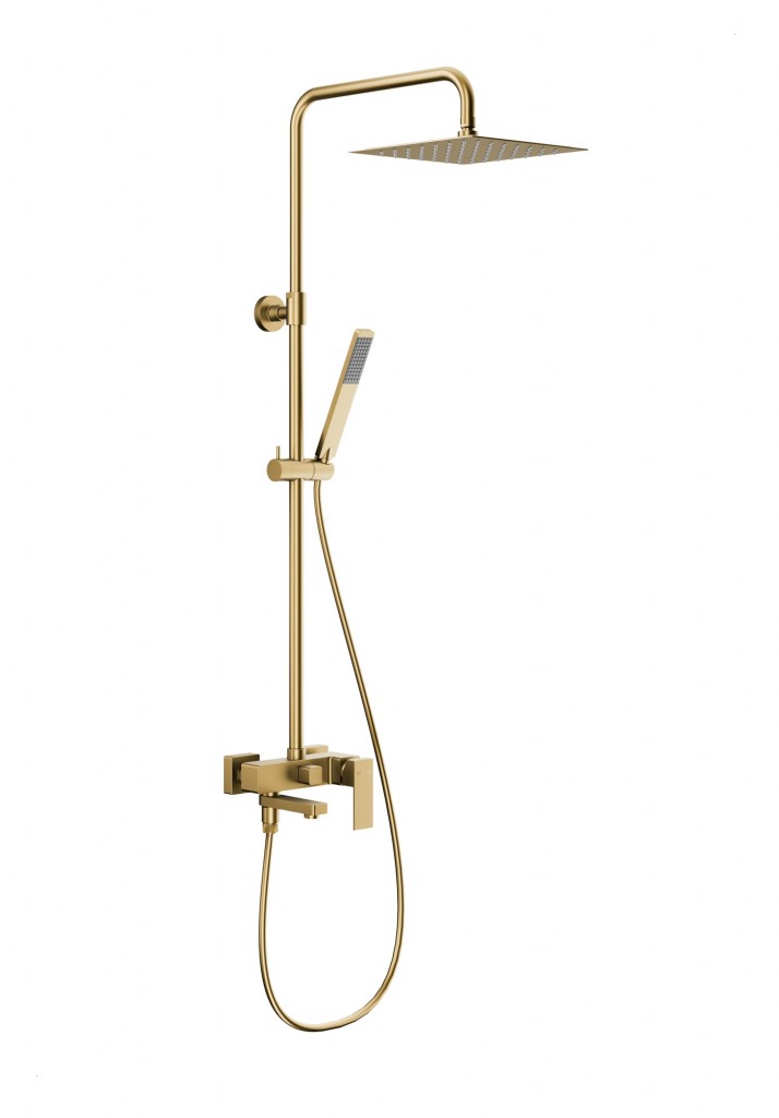 KFA - Sprchový sloup Logon s baterií sprchovou a vanovým výtokem, PVD broušené světlé zlato (5136-925-39)