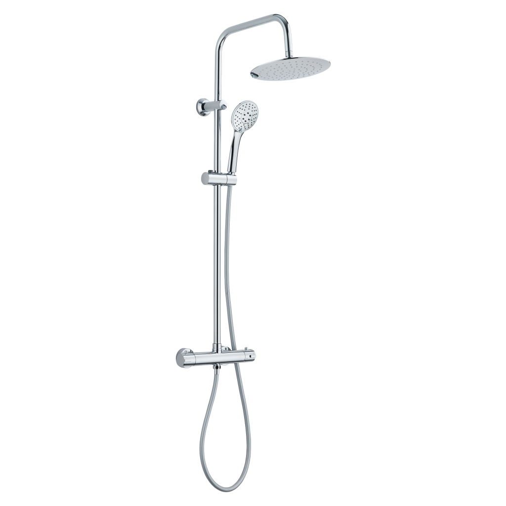 Sprchový sloup s termostatickou baterií umožňuje šetřit spotřebu vody při každodenním sprchování, díky konstantní teplotě vody. Baterie umožňuje měnit teplotu a množství vody, je přednastavena teplota na 38°C.