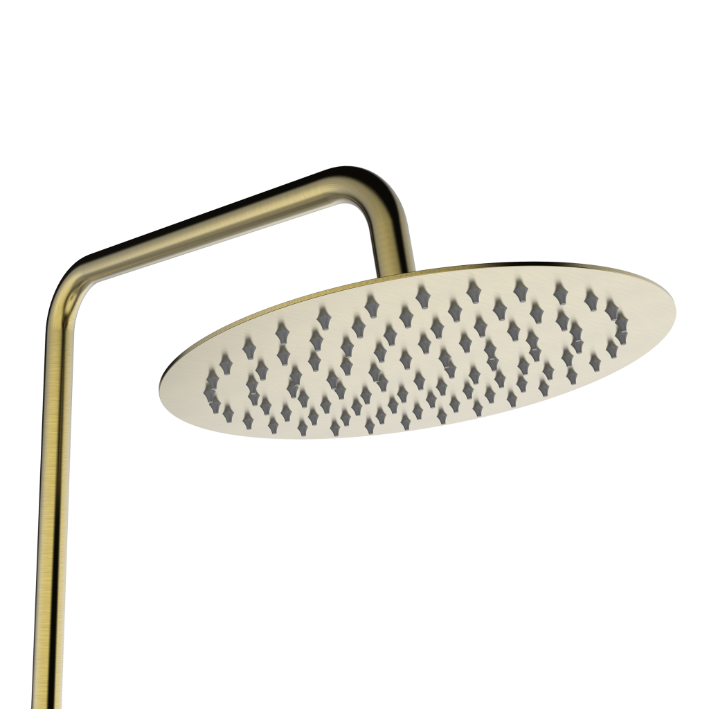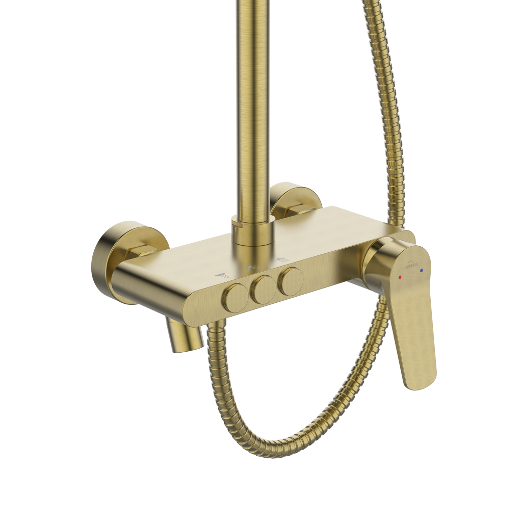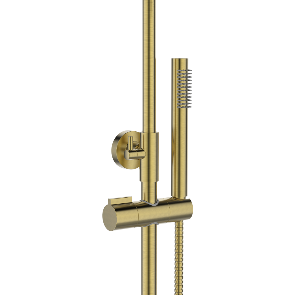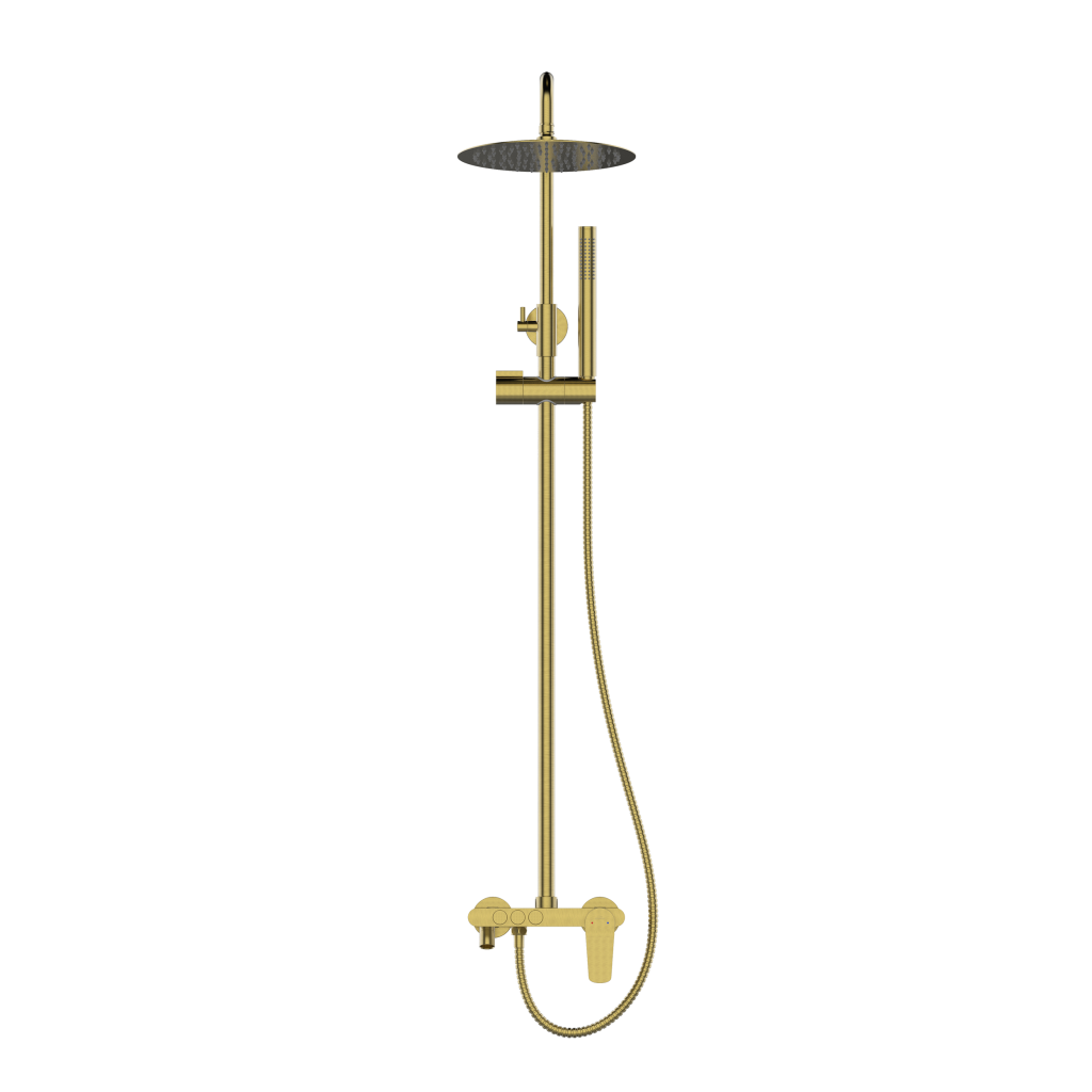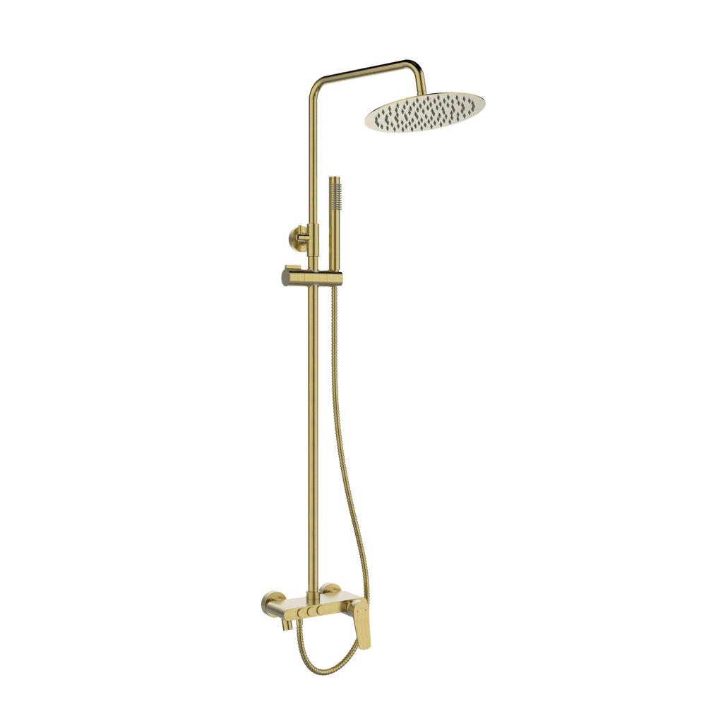 Objevte jedinečné řešení pro vaši koupelnu s dešťovou sprchou a sprchovou baterií ALONIA v elegantním kartáčovaném zlatě. Nastavitelný sloup (87–135 cm) a pohyblivá horní sprcha o průměru 25 cm zajišťují naprostý komfort při koupání. Systém proti vodnímu kameni a úsporná spotřeba vody zaručují dlouhou životnost a pohodlí. Ruční sprcha s jednou funkcí a baterie se třemi funkcemi umožňují rychlý výběr zdroje vody: dešťová sprcha, ruční sprcha nebo pohyblivý výtok, zatímco 150cm dvojitě opletená ocelová hadice poskytuje naprostou volnost pohybu. Perfektní řešení pro ty, kteří hledají ve své koupelně modernitu a funkčnost.