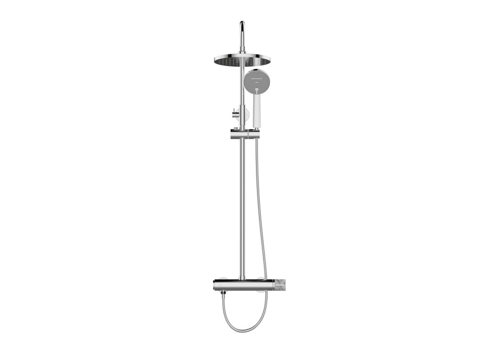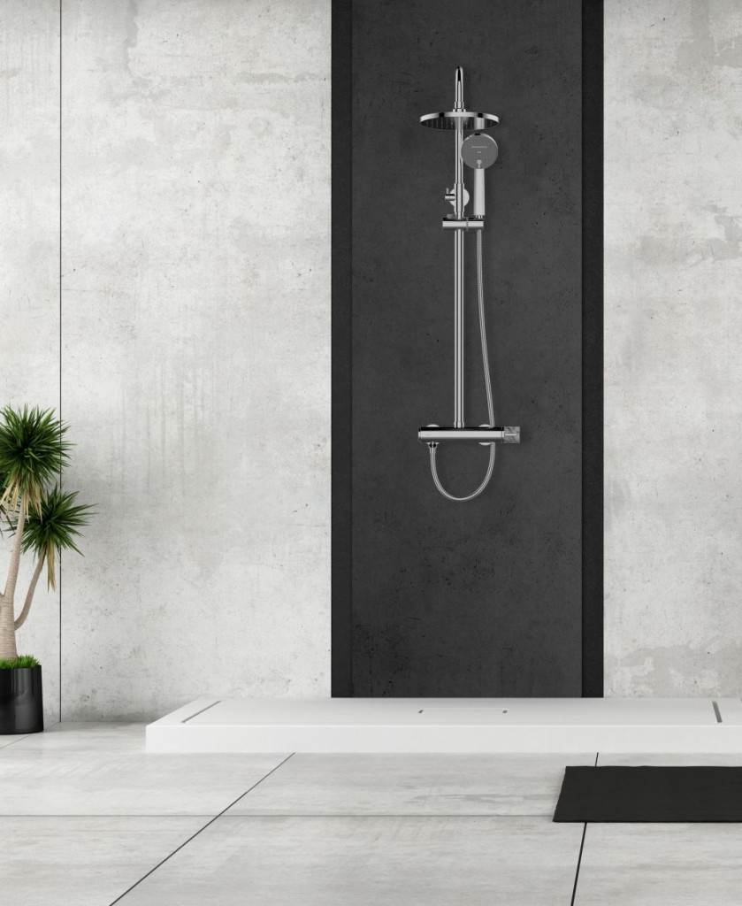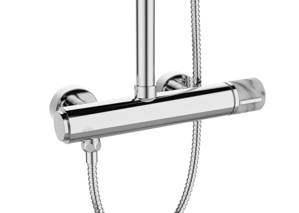 Chromovaná dešťová sprcha integrovaná se sprchovou baterií s rukojetí zakončenou efektním mramorem jistě rozzáří a dodá eleganci každému sprchovému koutu. Bílý mramor v kombinaci s chromem je řešení, které je módní i nadčasové. 3 druhy proudu dostupné ve sprchové hlavici zpříjemní každé ošetření. Jemné kapky z dešťové sprchy uklidní vaše smysly jako teplý letní déšť. Sluchátko a dešťová sprcha jsou vybaveny sprchovými body se systémem proti usazování vodního kamene, což výrazně usnadňuje jejich udržování v čistotě. Tenká dešťová sprcha omezuje kapání vody po jejím vypnutí, což z ní dělá volbu pro lidi, kteří oceňují ekologická řešení. Nastavitelná výška sloupu umožňuje přizpůsobit jej individuálním potřebám a možnostem místnosti a integrace s kohoutkem také usnadňuje udržování celého sloupu v čistotě.