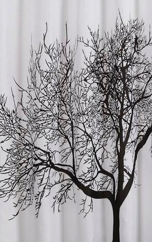 AQUALINE - Sprchový závěs 180x200cm, polyester, černá/bílá, strom (ZP008)