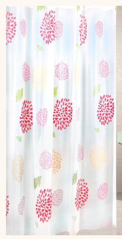AQUALINE - Sprchový závěs 180x200cm, vinyl, květovaný, červená (ZV015)