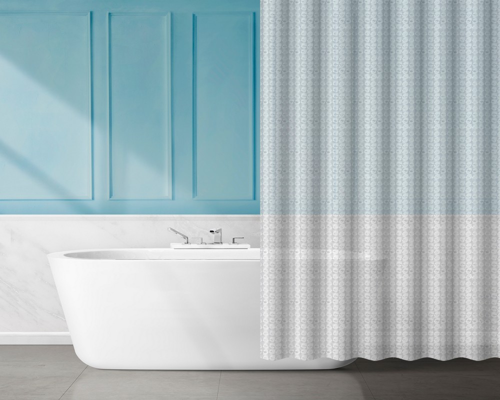 Voděodolný, průhledný sprchový závěs s 3D efektem. Má geometrický, trojrozměrný vzor, který krásně odráží světlo. Je vyrobena z materiálu EVA, tedy kvalitní fólie, která se vyznačuje vysokou kvalitou, nepromokavostí, příjemným na dotek a snadno se čistí. Má geometrický, trojrozměrný vzor, který krásně odráží světlo. Sada obsahuje 12 bílých závěsných kroužků. Fóliový sprchový závěs je vhodný pro jemné ruční čištění při 30 stupních. Nežehlit, nečistit chemicky, nebělit, nesušit v sušičce.