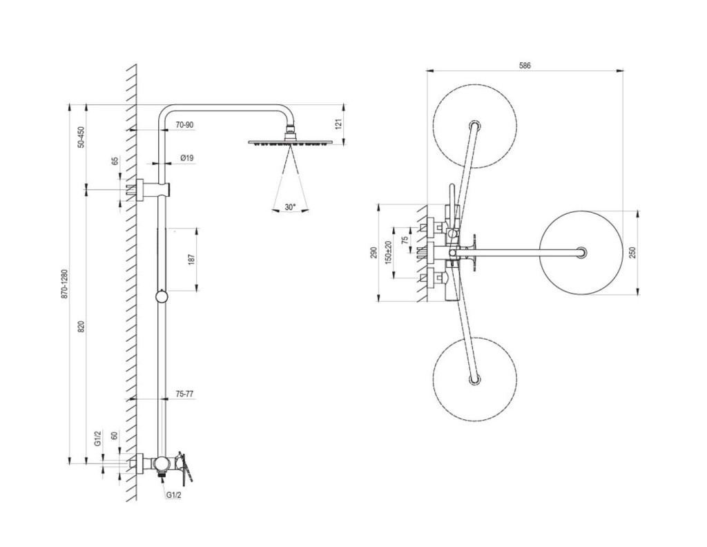 Sprchový systém SG 098.20BL se skládá z: