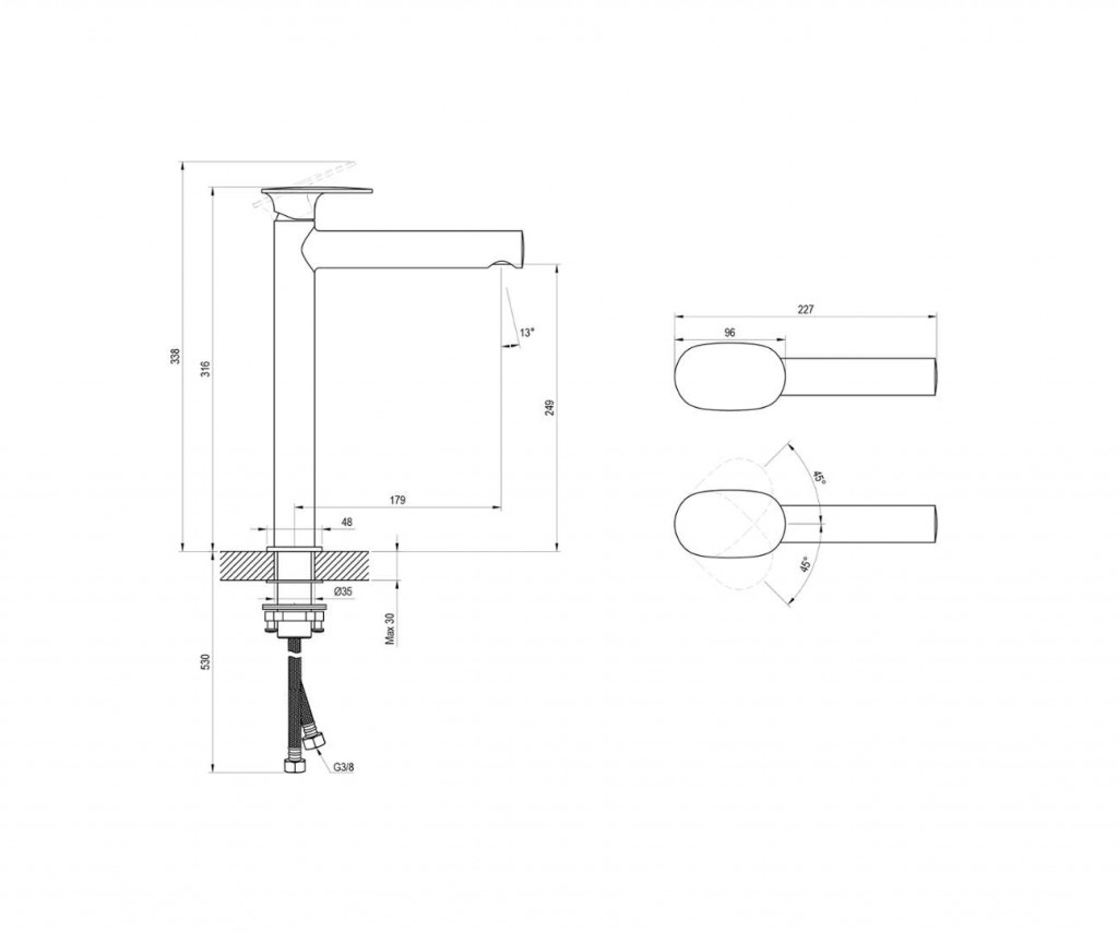 - připojovací hadičky: flexibilní 450 mm, průměr DN6, G3/8