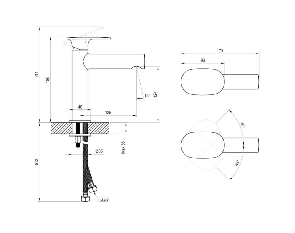 - připojovací hadičky: flexibilní 450 mm, průměr DN6, G3/8
