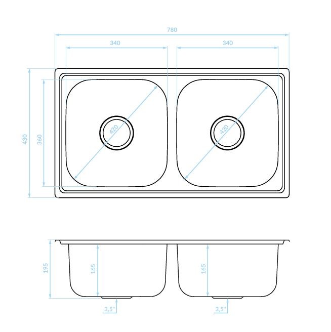 Dřez Standard je praktickým a elegantním řešením pro malé a středně velké kuchyně. Díky svým dvěma hlubokým vaničkám (každá 17 cm) nabízí pohodlný prostor pro mytí velkého nádobí, oplachování potravin nebo rozmrazování. Druhou vaničku lze navíc využít jako odkapávač. Celkový rozměr 43 × 78 cm je ideální pro instalaci do skříněk od šířky 80 cm.