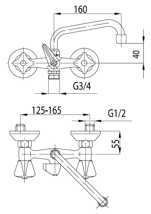 Nástěnná umyvadlová baterie STANDARD od výrobce KFA ARMATURA s roztečí 150 mm. Výhodou je otočné ramínko o délce 160 mm a perlátorem. Přídavné připojení 3/4" (pračka/ myčka nádobí)