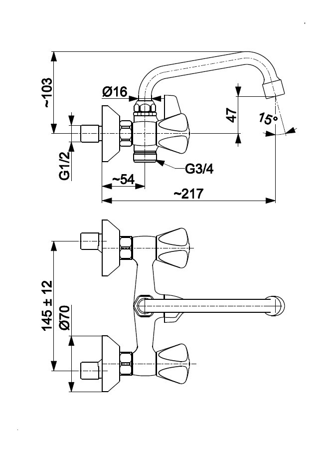 NÁSTĚNNÁ UMYVADLOVÁ BATERIE STANDARD