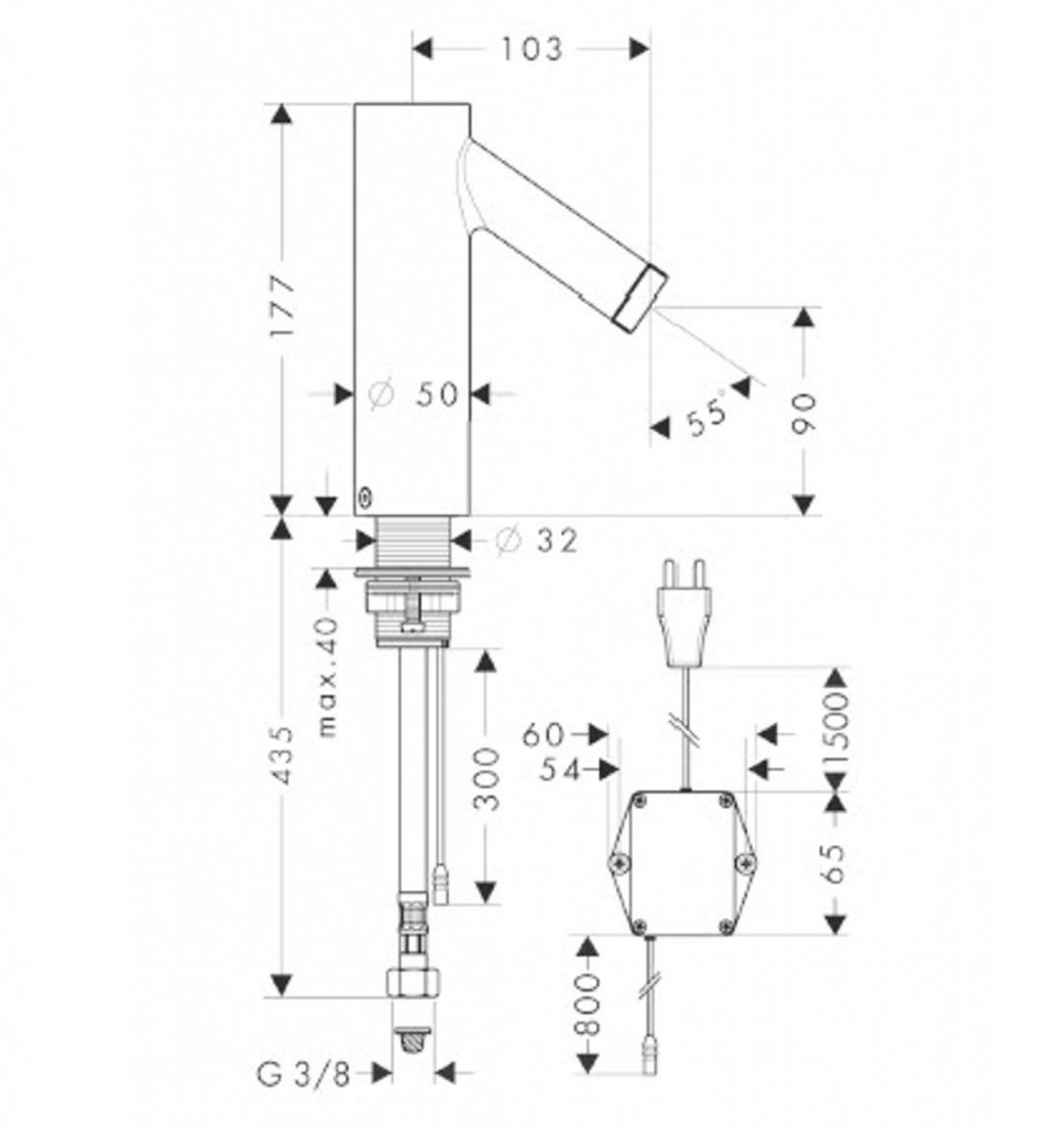 možné omezení funkčnosti pokud je čidlo zastíněno vlivem tvaru umyvadla nebo je-li umyvadlo příliš velké a vzdálenost mezi čidlem a okrajem umyvadla je větší než 75 mm