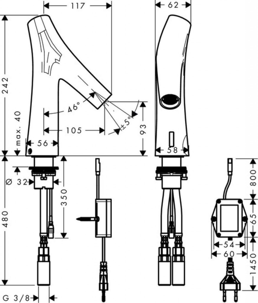 Elektronická umyvadlová baterie bez regulace teploty, s připojením na síť 230 V