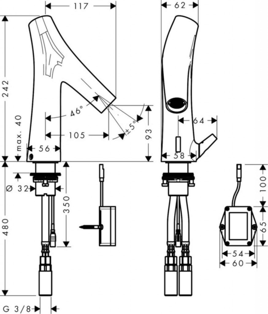 Elektronická umyvadlová baterie s regulací teploty, bateriový provoz