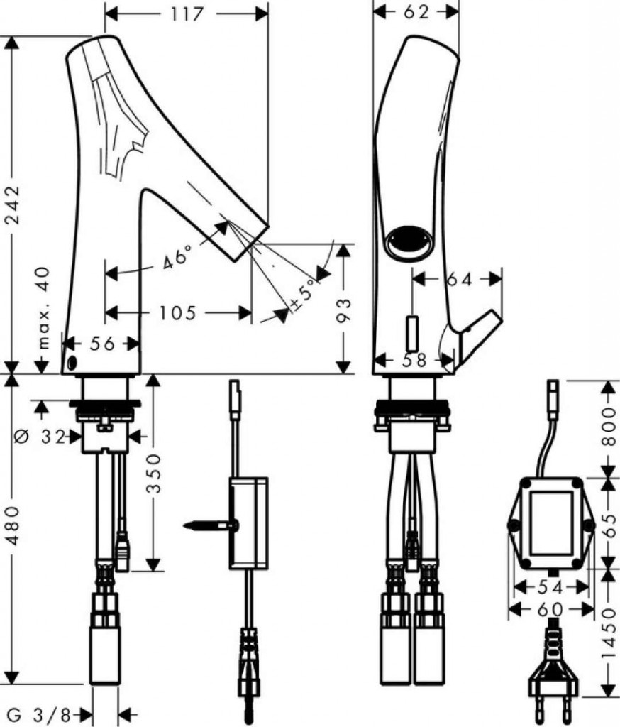 Elektronická umyvadlová baterie s regulací teploty, s připojením na síť 230 V