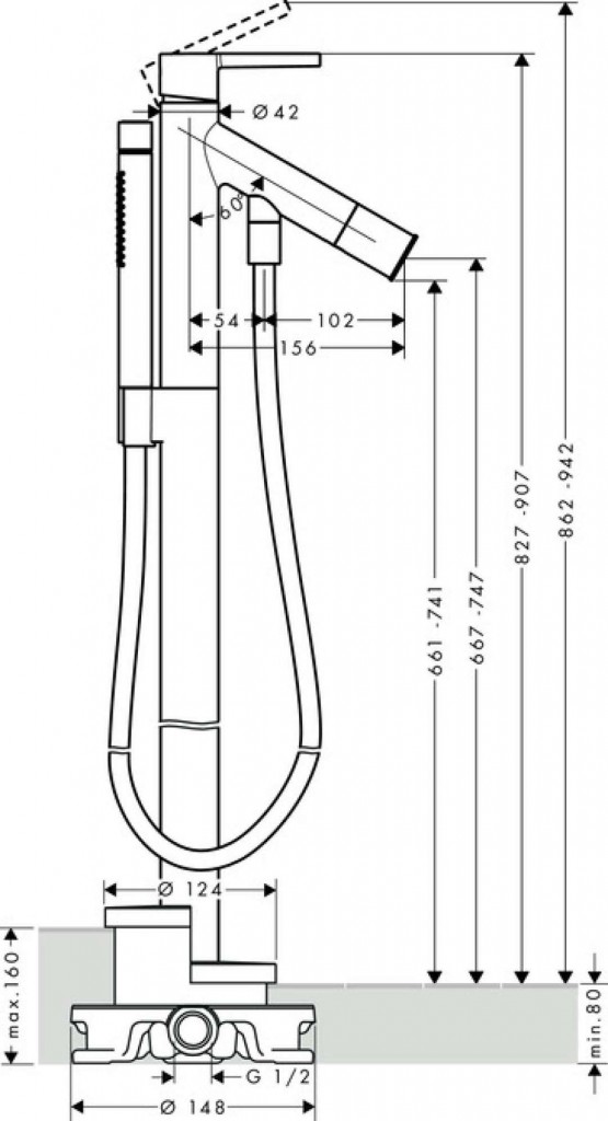 Hansgrohe Axor Starck Podlahová stojanová jednopáková vanová baterie