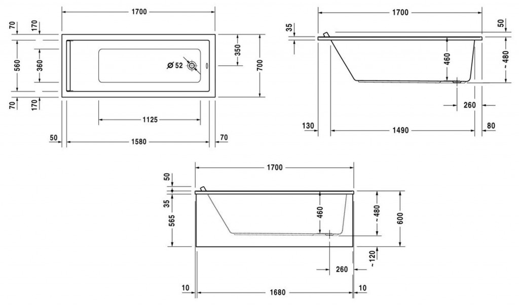 Odtoková souprava ani podpora vany nejsou součástí balení, nutné dokoupit zvlášť.