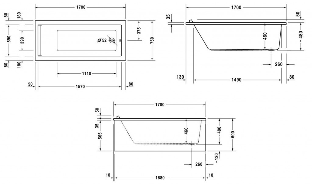 Odtoková souprava ani podpora vany nejsou součástí balení, nutné dokoupit zvlášť.