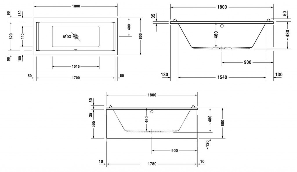 Odtoková souprava ani podpora vany nejsou součástí balení, nutné dokoupit zvlášť.