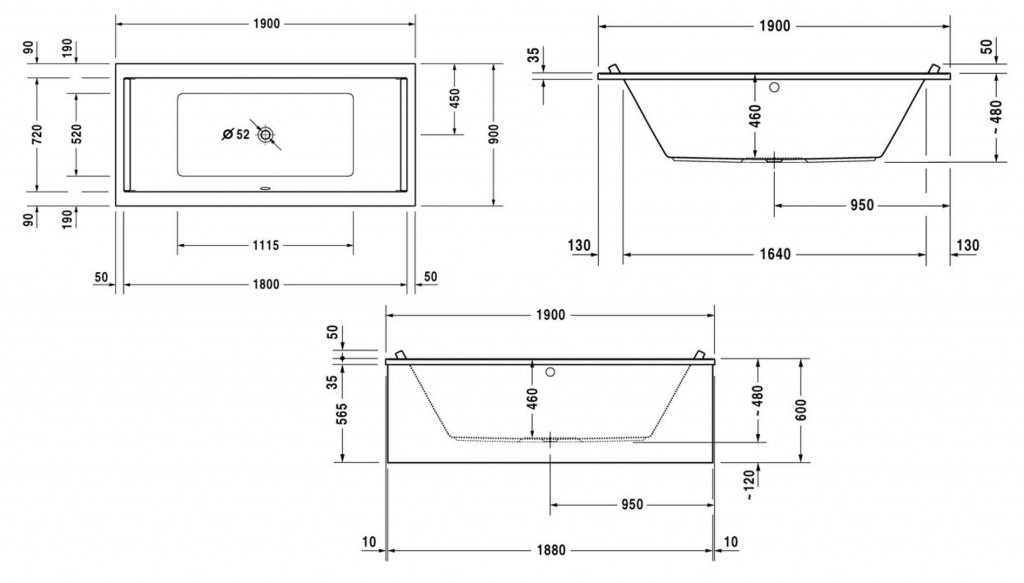 Odtoková souprava ani podpora vany nejsou součástí balení, nutné dokoupit zvlášť.