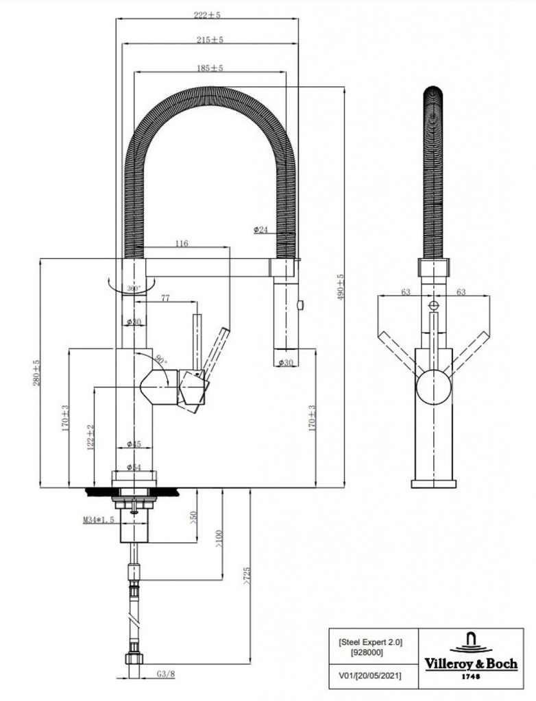 Kuchyňská páková baterie s flexibilním ramenem s přepínáním proudů