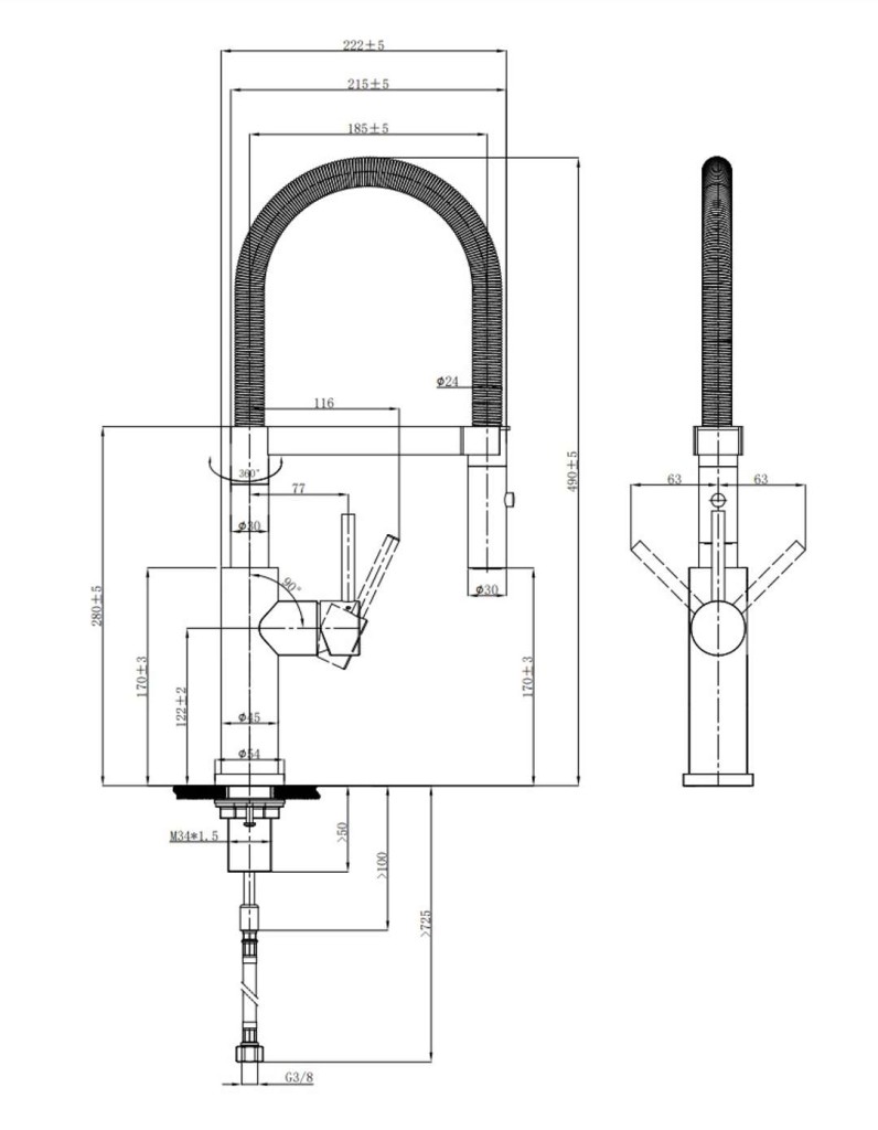 Kuchyňská páková baterie s flexibilním ramenem s přepínáním proudů