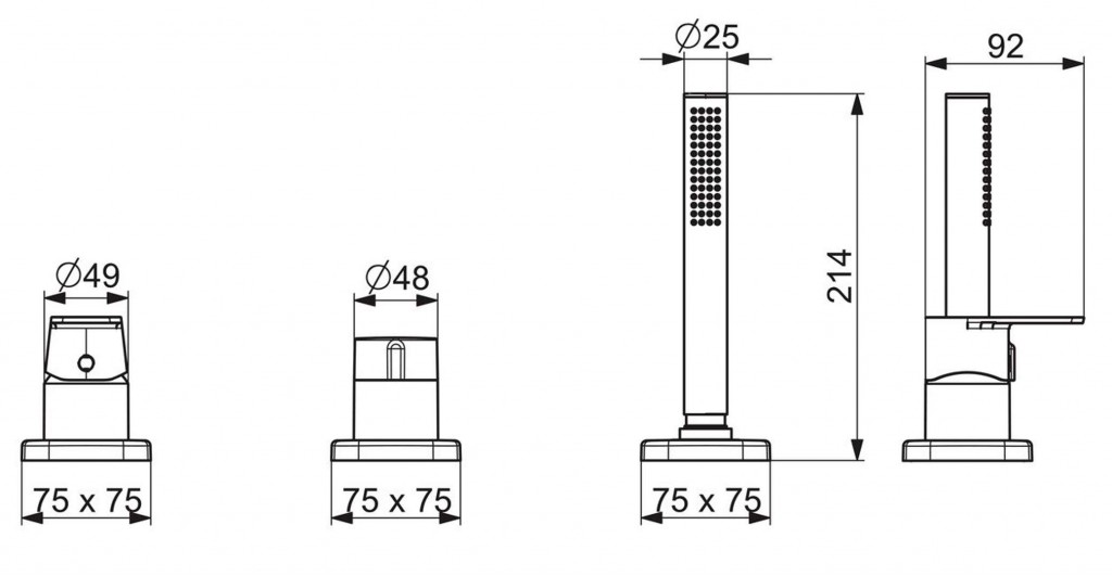 Tříotvorová baterie Stela pro instalaci na okraj vany