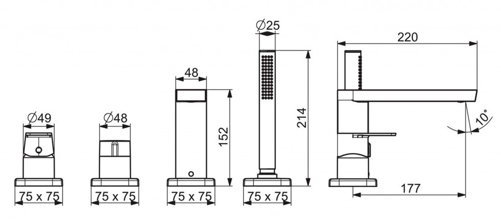 Čtyřotvorová baterie Stela pro instalaci na okraj vany, zaoblené rozety