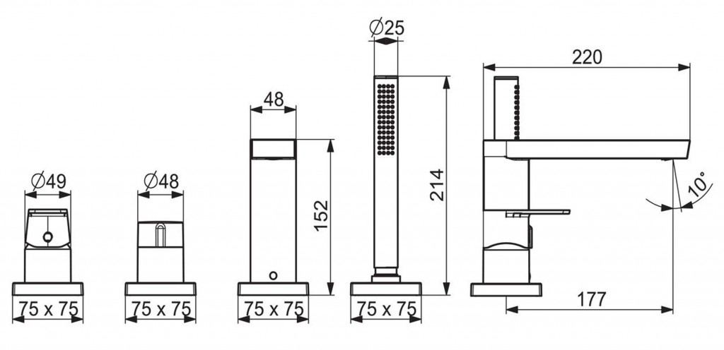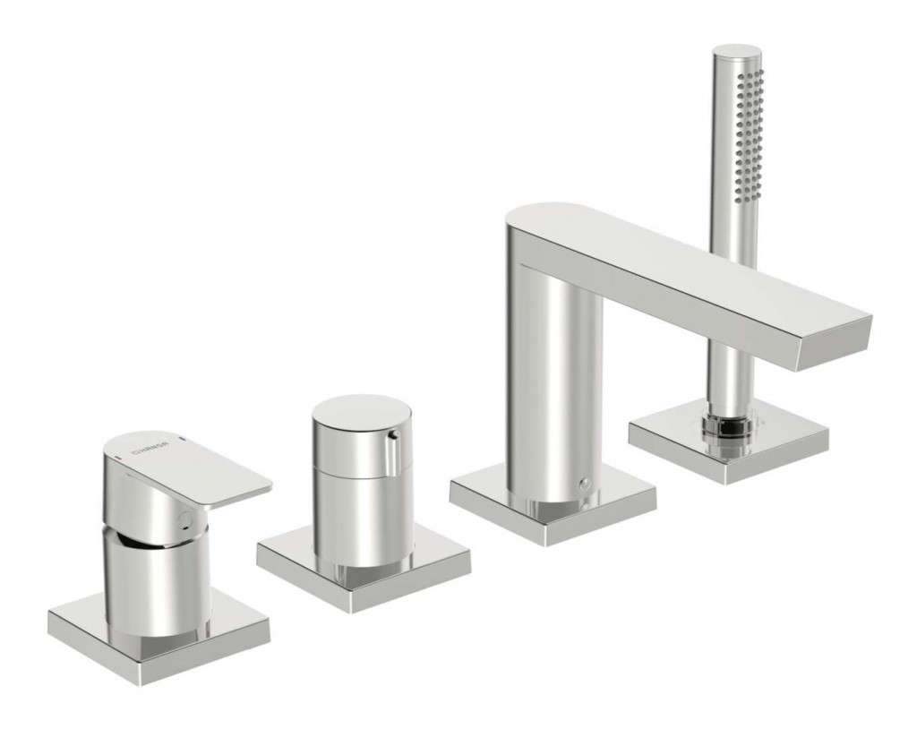 Čtyřotvorová baterie Stela pro instalaci na okraj vany, hranaté rozety