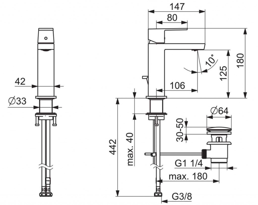Umyvadlová baterie Stela, s výpustí ovládanou táhlem