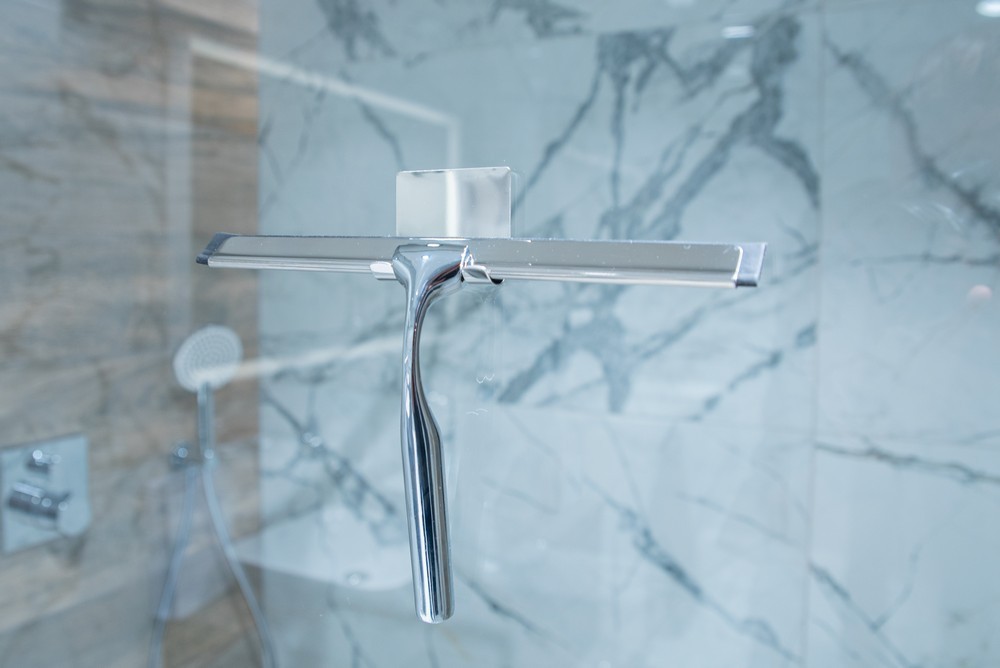 Kvalitní, ergonomická a robustní celokovová stěrka vhodná do jakékoliv koupelny. Součástí balení je i držák, který se lepí na obklad, sklo aj.