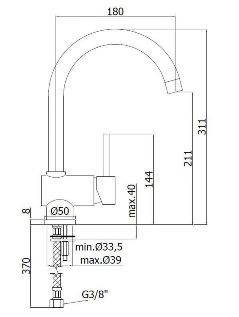 Kuchyňská dřezová stojánková páková baterie s otočným raménkem