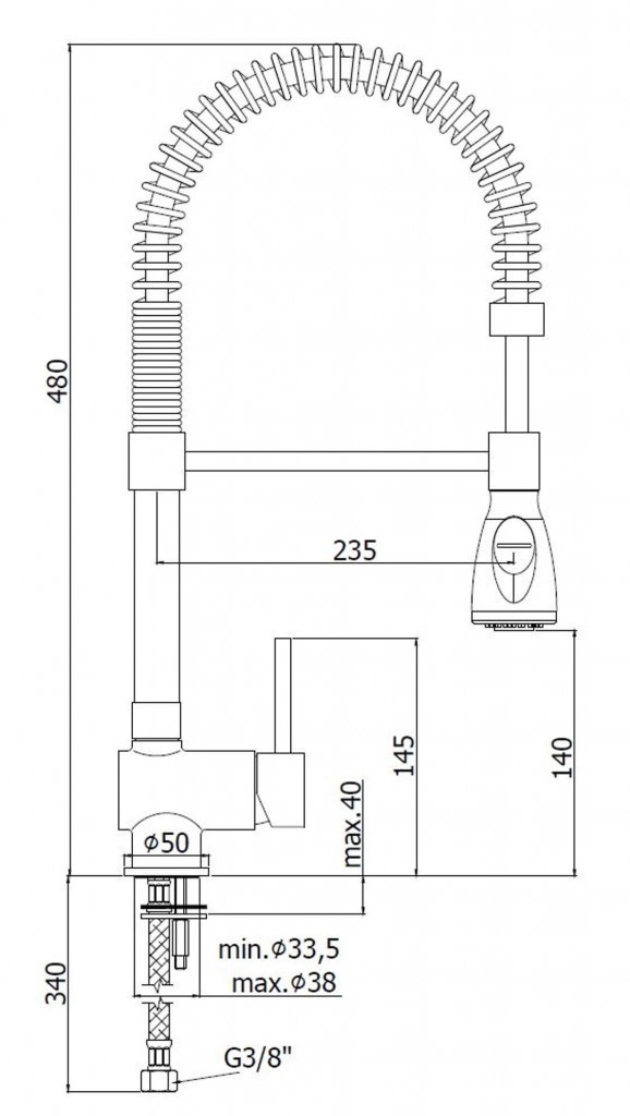 Kuchyňská stojánková baterie, s pružným ramenem
