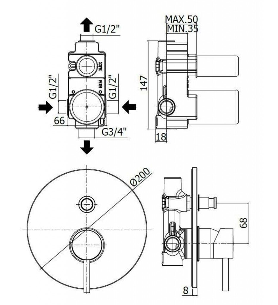 - s vypínačem vodního proudu (vana-sprcha nebo dešťová sprcha-ruční sprcha)