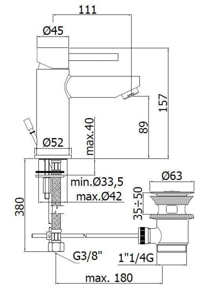 - délka výtoku 111 mm, komfortní zóna 89 mm