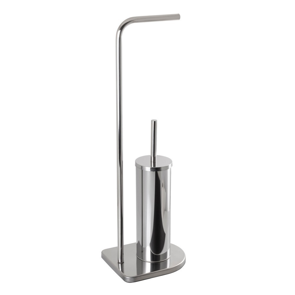 Popis: Elegantní stojan na toaletní papír AWD INTERIOR 1981 kombinovaný s držákem na WC kartáč, vyrobený z nerezové oceli s vysokým leskem. Díky svému modernímu a funkčnímu designu se perfektně hodí do koupelen v klasickém, moderním nebo minimalistickém stylu. Pevná a stabilní základna má rameno s držákem na roli toaletního papíru a nádobku na toaletní štětku. Kartáč je vybaven praktickým víčkem, které ukrývá vnitřek nádoby a zajišťuje tak čistý a uklizený vzhled. Bílý kartáč vyrobený z odolného plastu se snadno používá a je vysoce účinný při čištění. Uvnitř nádoby je vyjímatelná plastová vložka, která zabraňuje korozi a zjednodušuje čištění. To zajišťuje, že stojan nejen vypadá elegantně, ale také zachovává hygienu a snadné každodenní použití. Toto praktické řešení kombinuje funkčnost a vytříbenou estetiku a je tak ideálním doplňkem každé stylové koupelny.
