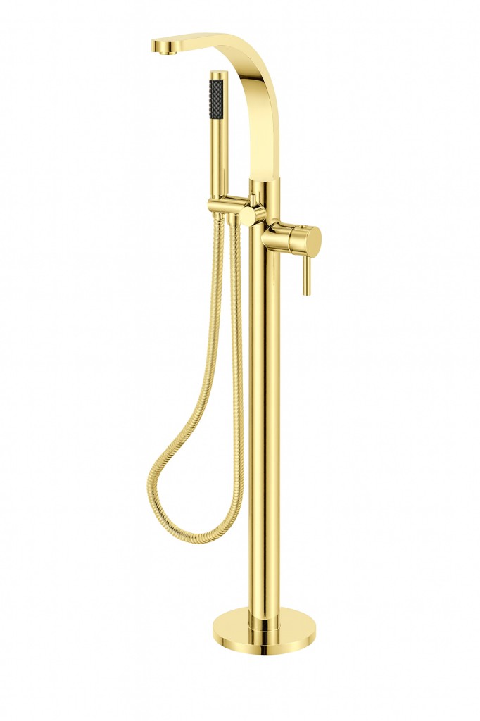 Vysoká vanová baterie DECCO I zlatá lesklá barva s výškou 1055 mm od evropského dodavatele vodovodních baterií BESCO. Baterie je určena pro instalaci do podlahy a oceníte ji zejména pokud máte volně stojící vanu. Dodáváno včetně příslušenství - sprchová hlavice s hadicí. Stojánková vanová baterie pro moderní koupelny. Dodáváme v šesti barvách a to lesklý chrom, černá matná, grafitová nebo zlatá, zlatá lesklá, zlatá broušená.