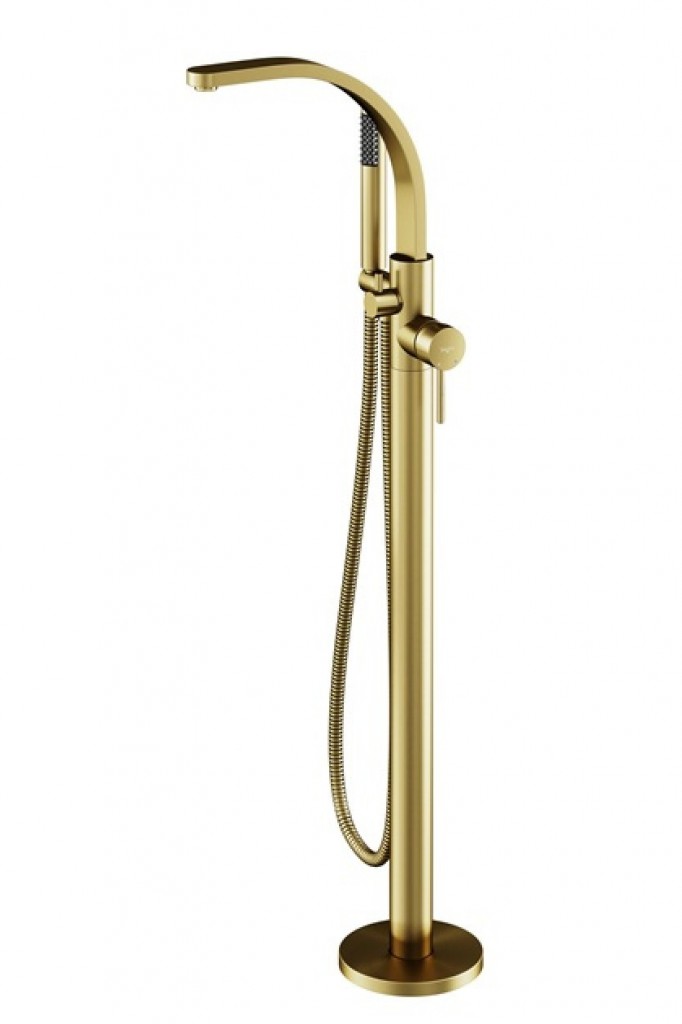 Stojánková baterie do podlahy vypadá skvěle v kombinaci s volně stojící vanou.
