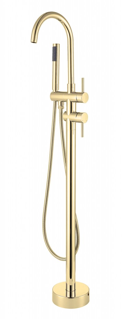 Stojánková baterie do podlahy vypadá skvěle v kombinaci s volně stojící vanou.