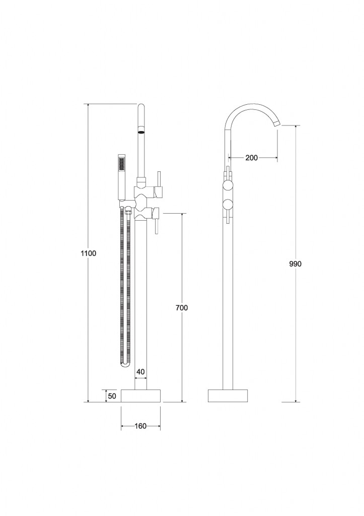 Vanová stojánková baterie je dodávána včetně příslušenství (sprchová růžice a hadice).