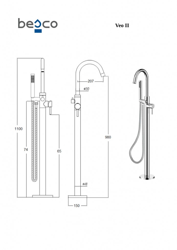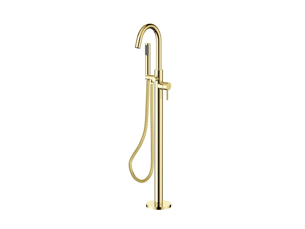 Stojánková vanová baterie VEO II zlatá barva od evropského dodavatele vodovodních baterií BESCO. Baterie je určena pro instalaci do podlahy a oceníte ji zejména pokud máte volně stojící vanu. Dodáváno včetně příslušenství - sprchová hlavice s hadicí. Stojánková vanová baterie pro moderní koupelny. Dodáváme v šestiti barvách a to lesklý chrom, černá, grafitová, zlatá, zlatá broušená nebo zlatá lesklá.