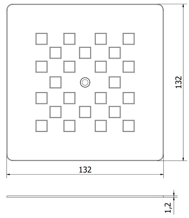 Krytka je vyrobená z nerezové oceli a opatřená barevnou povrchovou úpravou. Dostupná je v barvách: bílá, černá, nerez a zlato. Velikost krytky je 13,2 x 13,2 cm. Krytka je určená pro všechny sprchové vaničky STONE+.