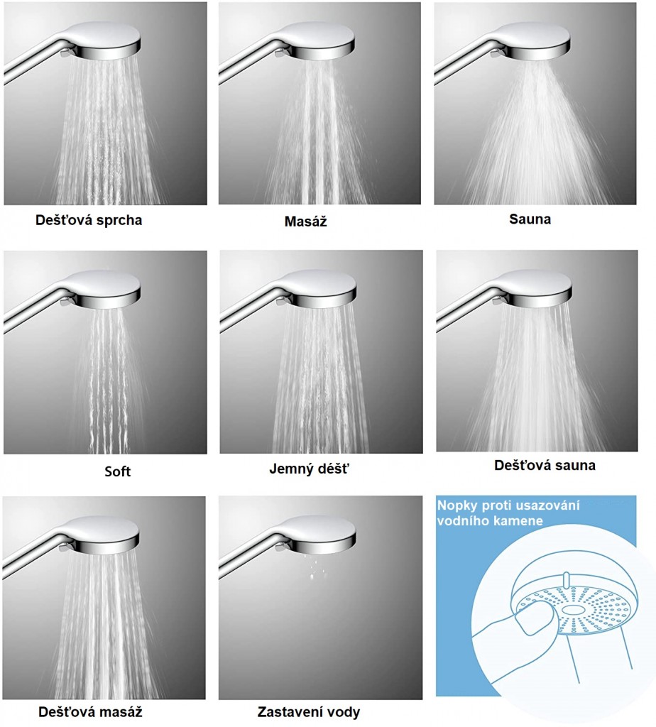 - 8 variant proudu pro rozmanité potěšení ze sprchování