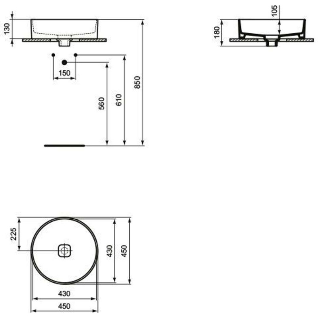 Kulaté umyvadlo na desku bez otvoru pro baterii
