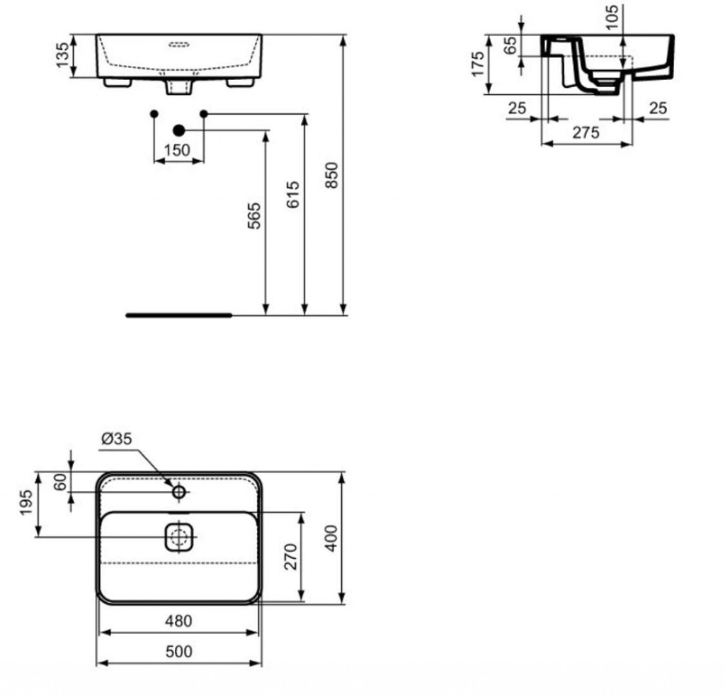 Polozápustné umyvadlo s otvorem pro baterii uprostřed