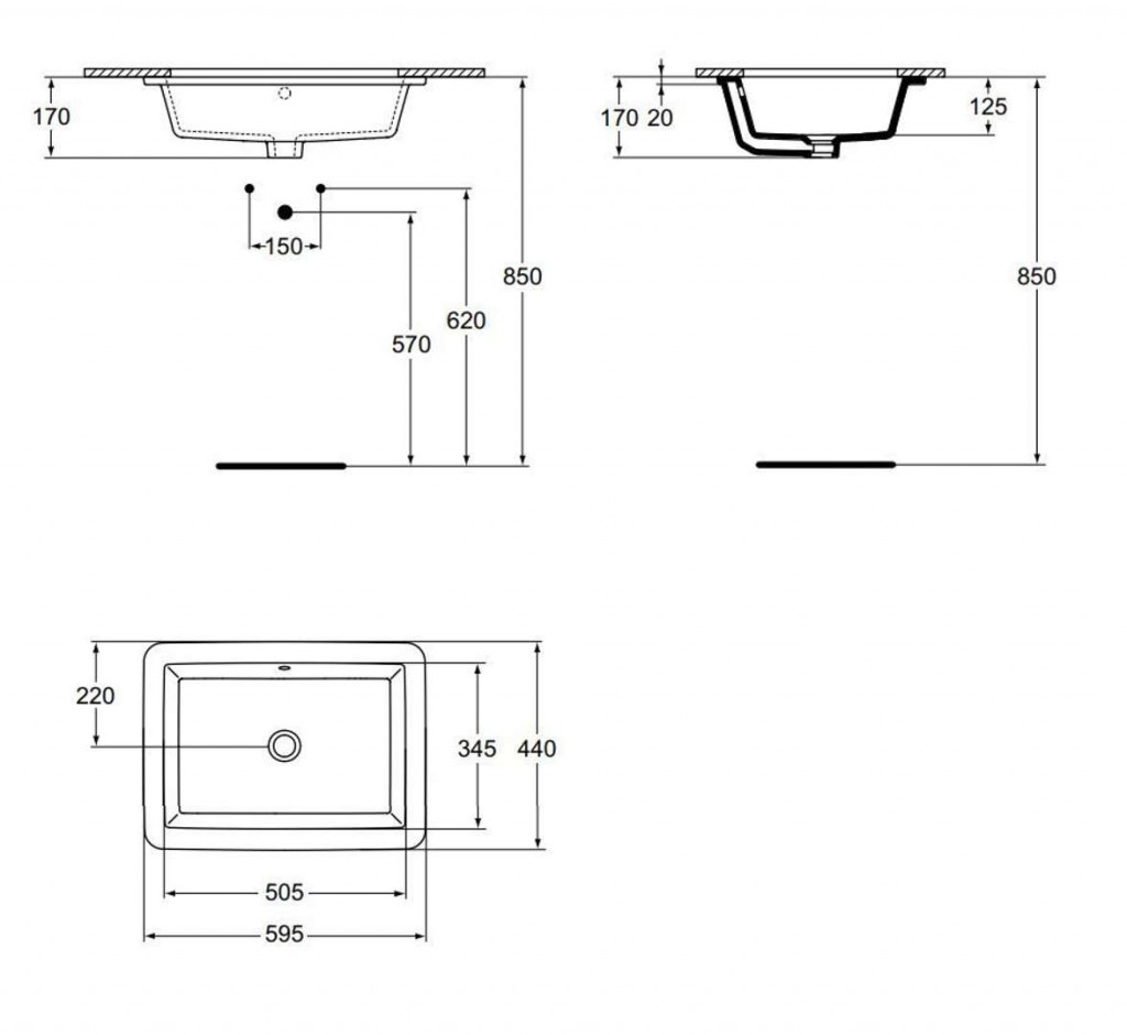 Zápustné keramické umyvadlo s přepadem