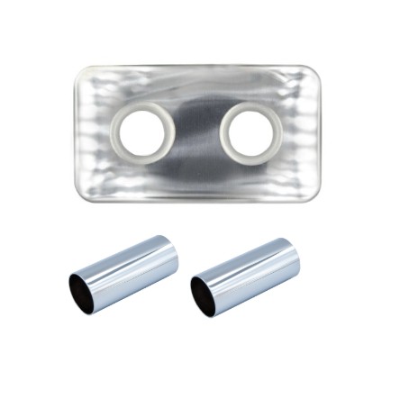 Universální krycí rozeta a krycí trubičky, které jsou určeny pro středové ventily. V balení jsou vždy 1 ks krycí rozety a 2 ks krycích trubiček. Vyrobeno z mosazi a dodáváme ve třech barevných variantách (chrom, bílá a černá barva).