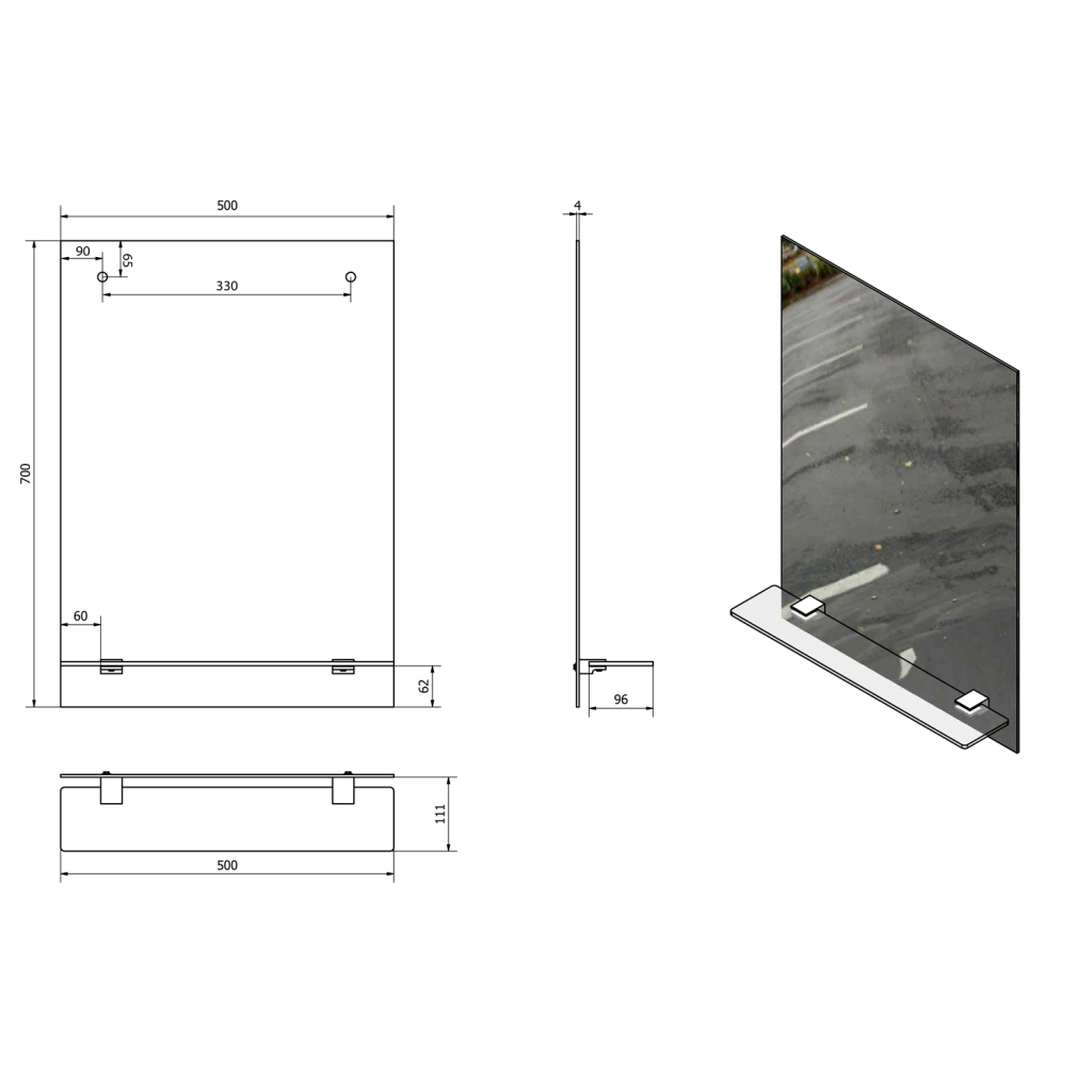 Polička není součástí zrcadla.