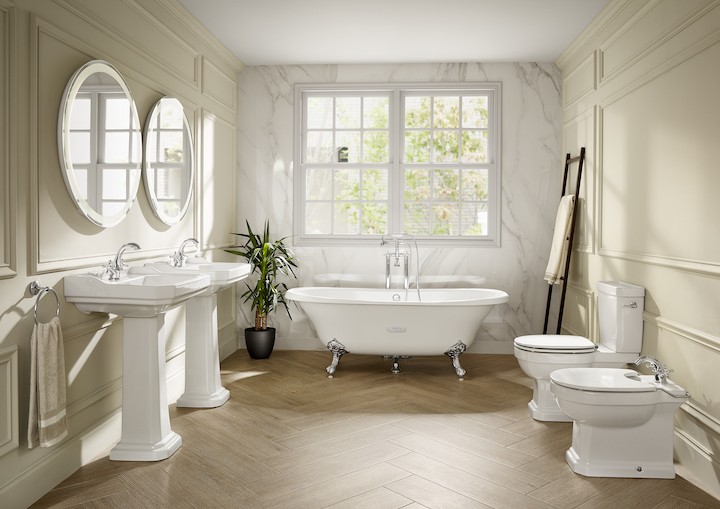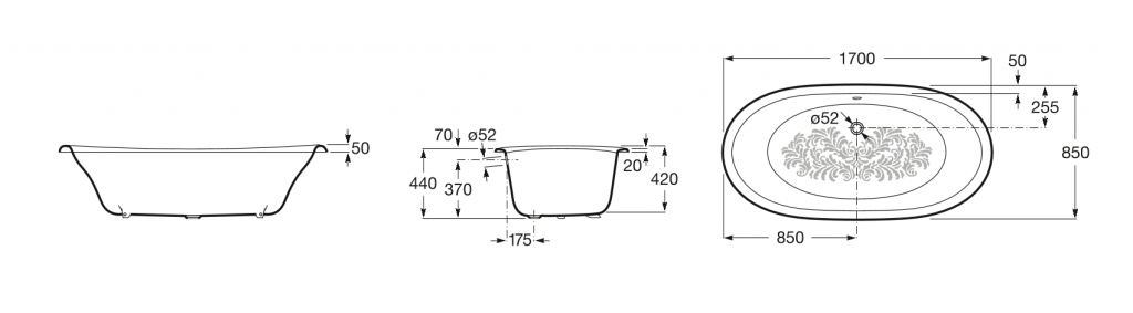 Volně stojící oválná litinová smaltovaná vana NEWCAST s protiskluzovým provedením antislip v bílém provedení.