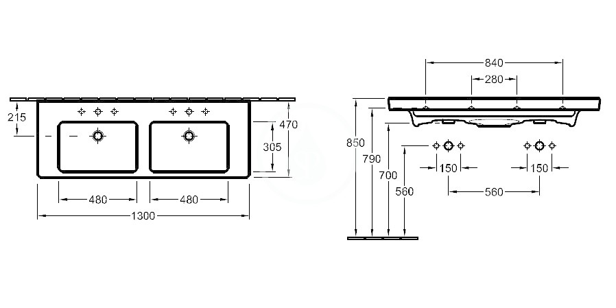 - pro dvě 3-otvorové baterie, prostřední otvory proraženy