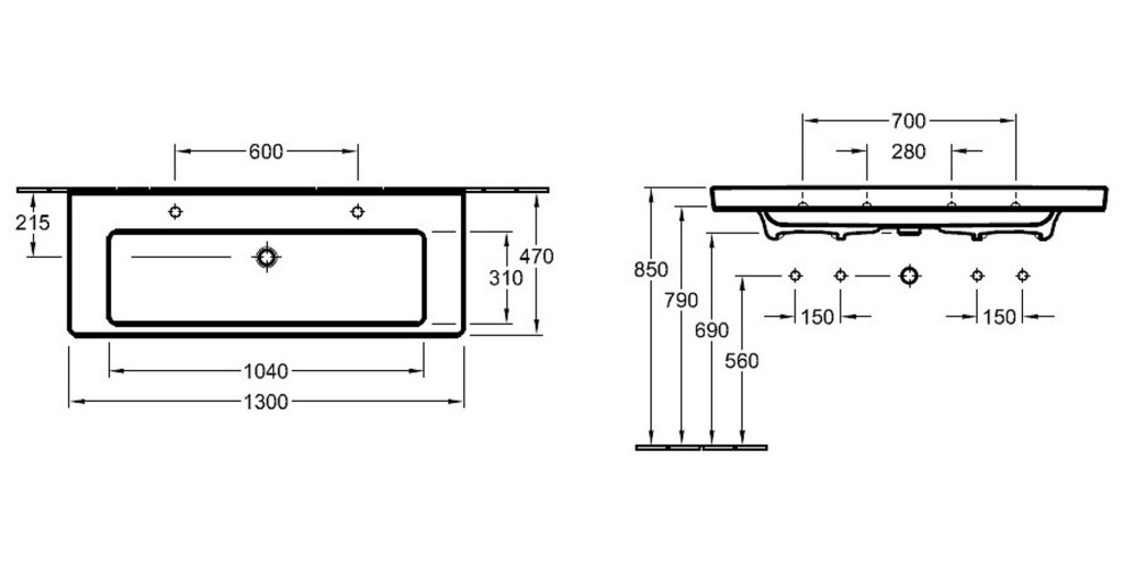 - pro dvě jednootvorové baterie, otvory pro armaturu proraženy