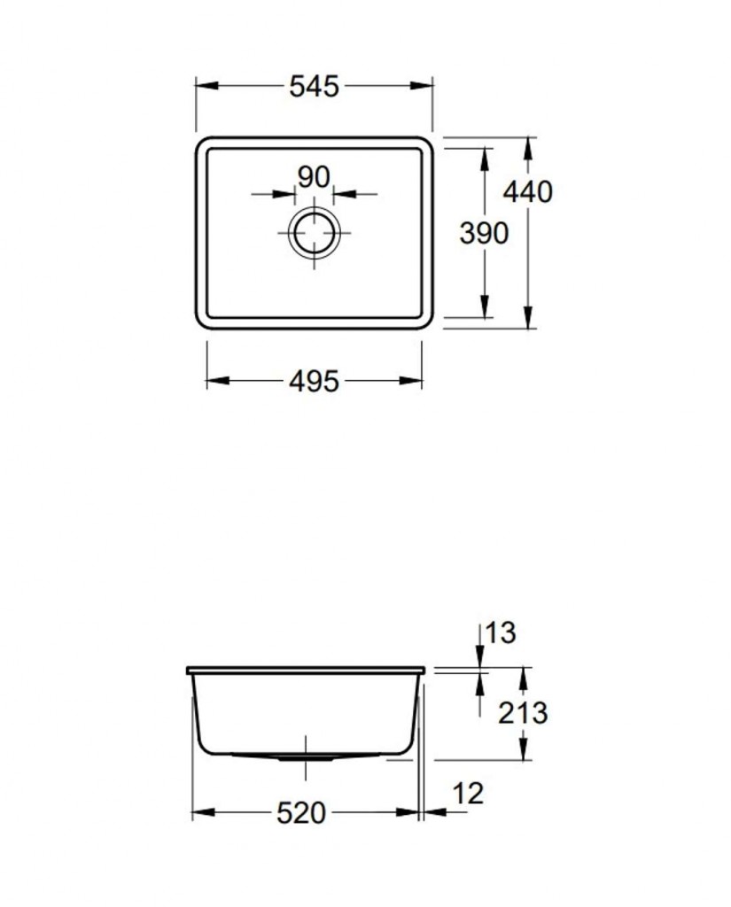 - celkový rozměr dřezu: 545 x 440 mm